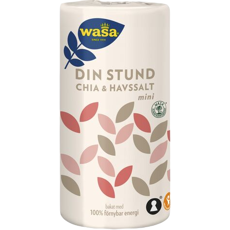 Sedan tidigare så finns Wasa Din Stund 260 g och Wasa Harmoni 260 g. Nu har även Wasa Din Stund Mini 270 g lanserats. Din Stund Mini är samma goda knäckebröd men i ett lite mindre format. Båda dessa varianter av Din Stund bakas med endast tre ingredienser; fullkornsrågmjöl, jäst, salt och toppas med chiafrön & havssalt. Tillsammans ger det ett knäckebröd med en rund och nötig karaktär.